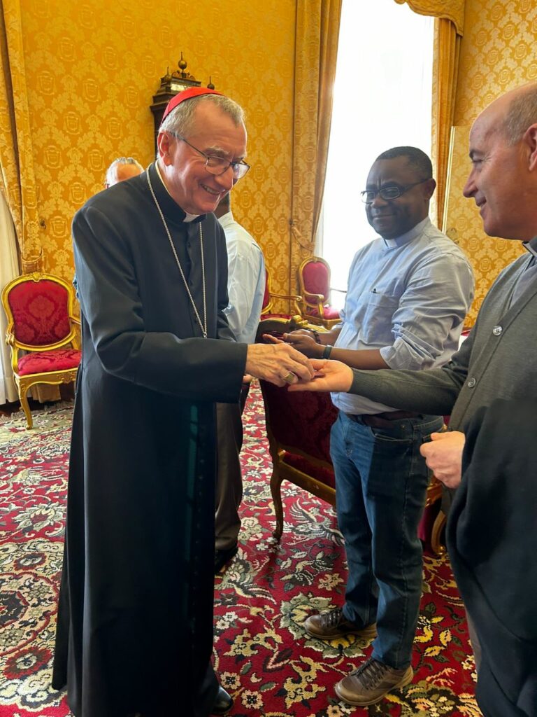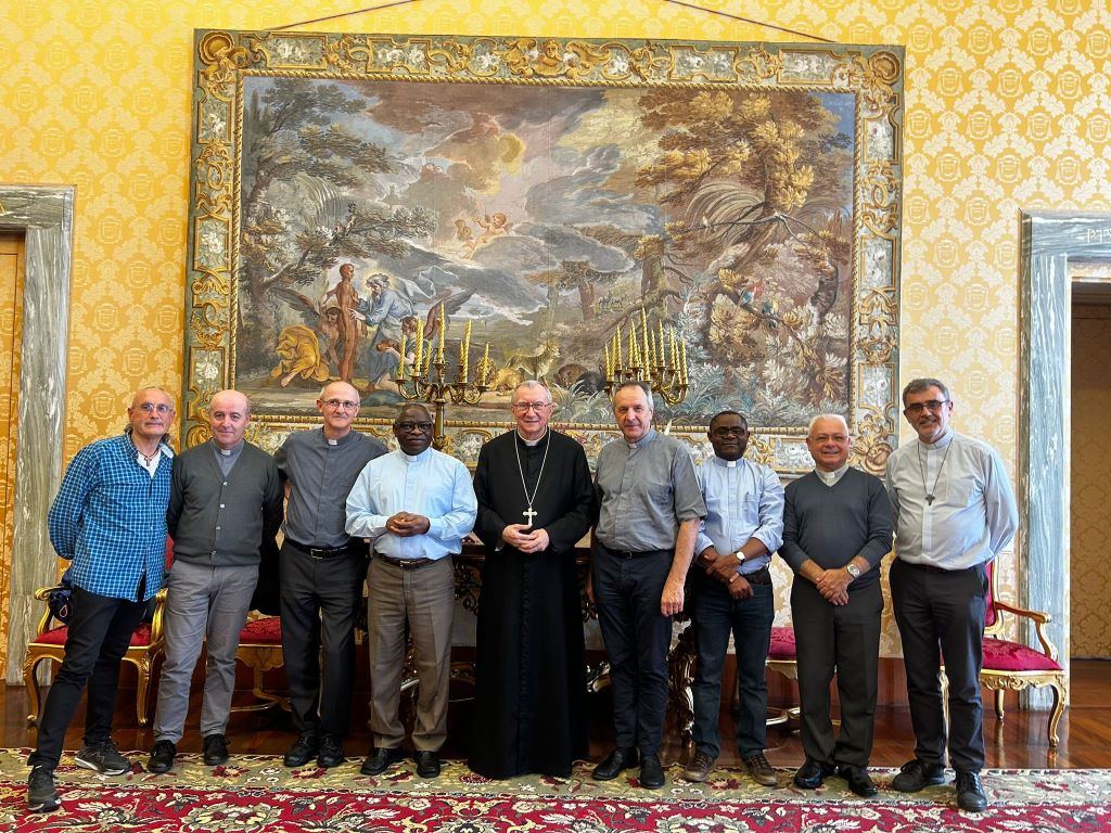 Photo en illustration : Au centre le Cardinal Pietro PAROLIN entouré par les membres du Conseil Général du Prado avec de gauche à droite les pères José Maria TORTOSA, Diego MARTIN PEÑAS, Damiano MEDA, Joseph NIKIEMA, puis Armando PASQUALOTTO, Bienvenu BABINDAMA KOKANI, Sergio BRAGA DOS SANTOS NETO et Luc LALIRE.