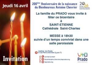 Cette journée anniversaire sera également fêtée à Saint-Etienne. À 18h30, la messe à la Cathédrale sera présidée par un jeune prêtre, le père Pierre Etienne Duchatelet – en lien avec les prêtres du Prado, avec chants et orgue.