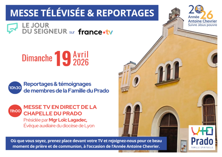 La Famille du Prado vous donne rendez-vous dimanche 19 avril 2026 pour la messe télévisée Le Jour du Seigneur (sur France TV), qui sera célébrée en direct de la Chapelle du Prado.
