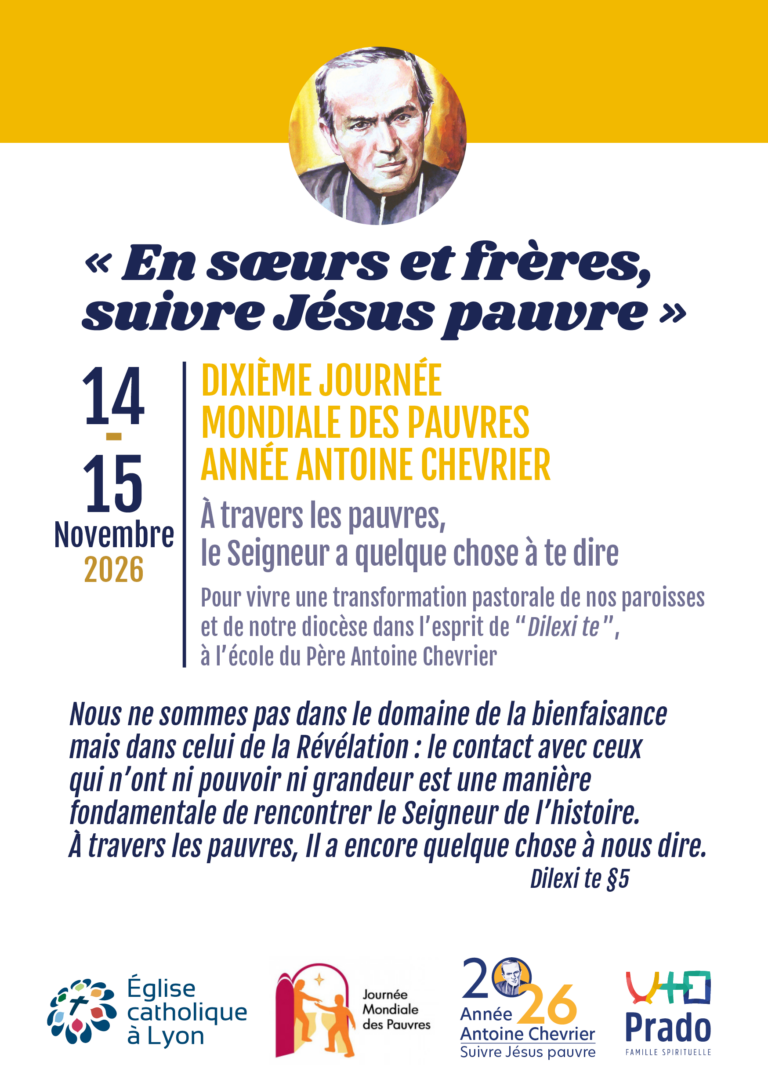 La 10ème Journée Mondiale des pauvres qui aura lieu le week-end du 14 et 15 novembre 2026, dans le cadre de l’Année Antoine Chevrier se prépare.