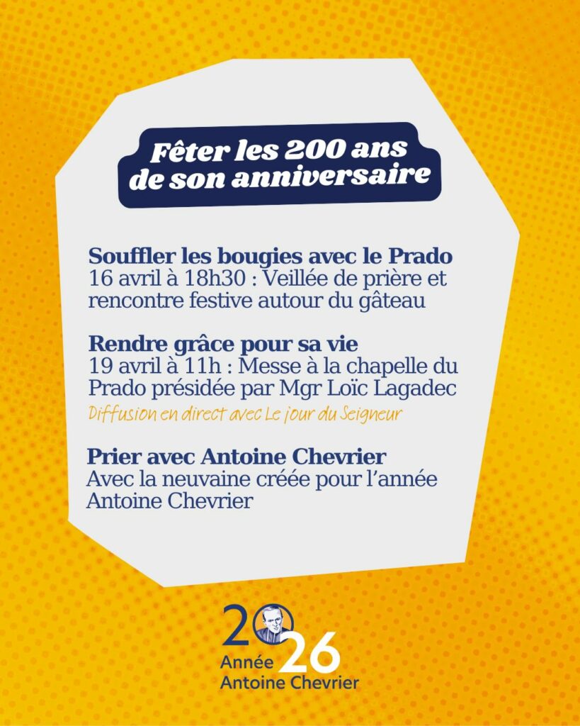 - Pour télécharger le livret Veillée de prière (16 avril 1826 – 16 avril 2026) proposé par l’Institut Féminin du Prado (IFP), cliquez-ici.