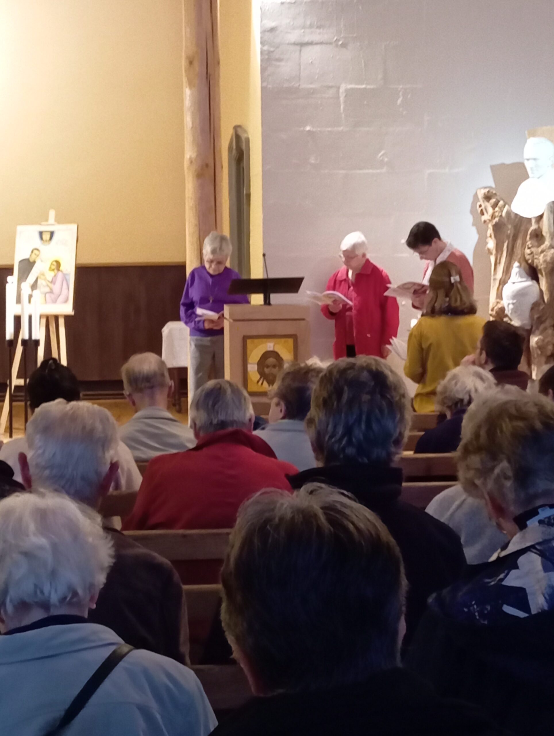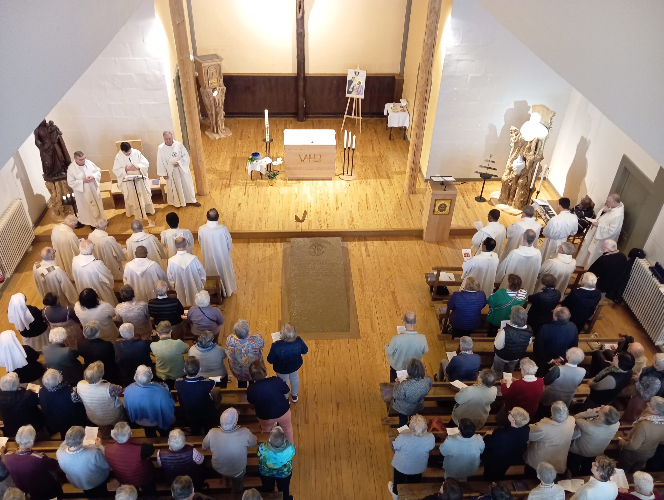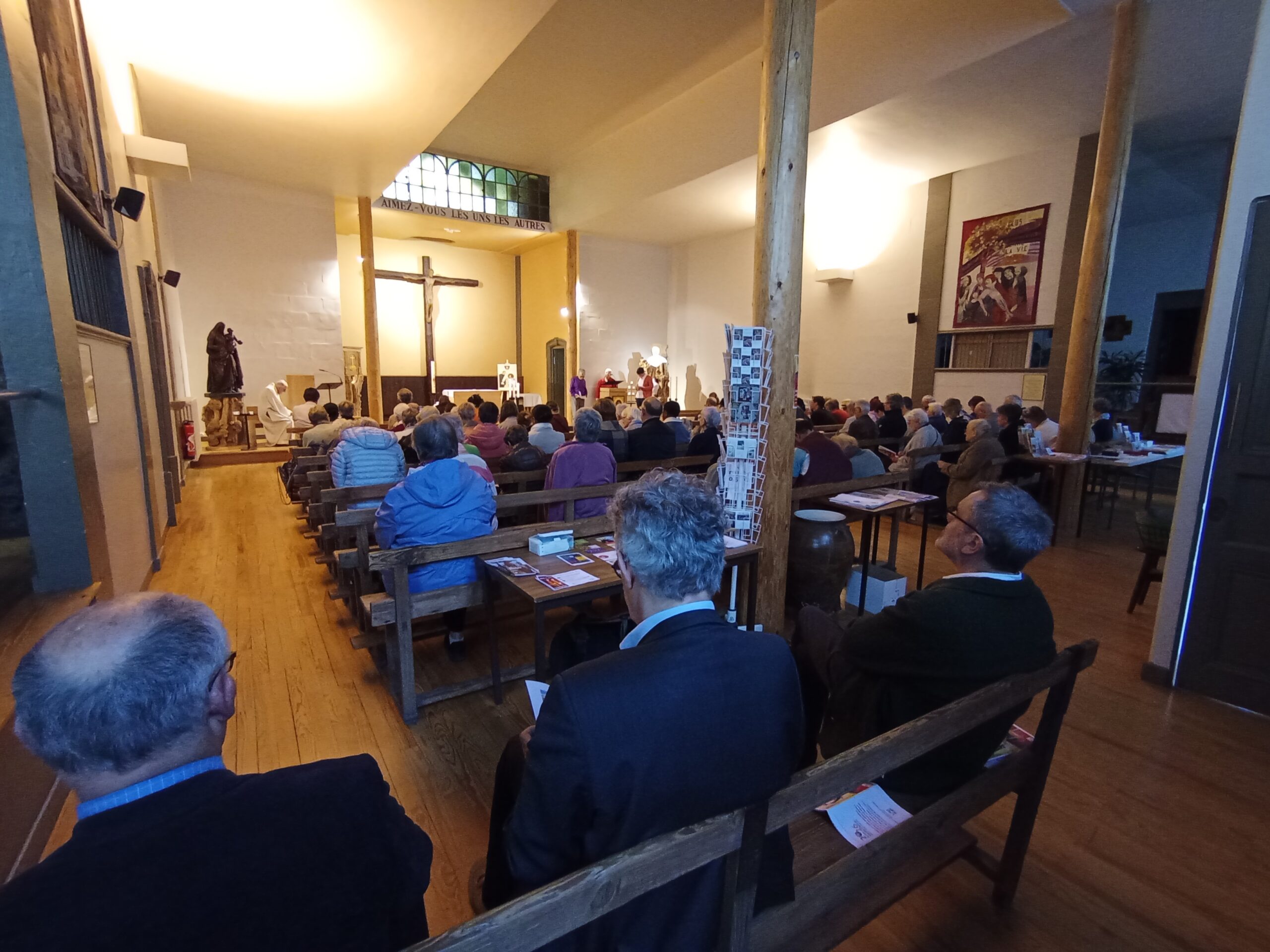 - À 12h15, la Chapelle du Prado a fait le plein pour cette messe anniversaire exceptionnelle. Pour télécharger le livret de la célébration, cliquez-ici.