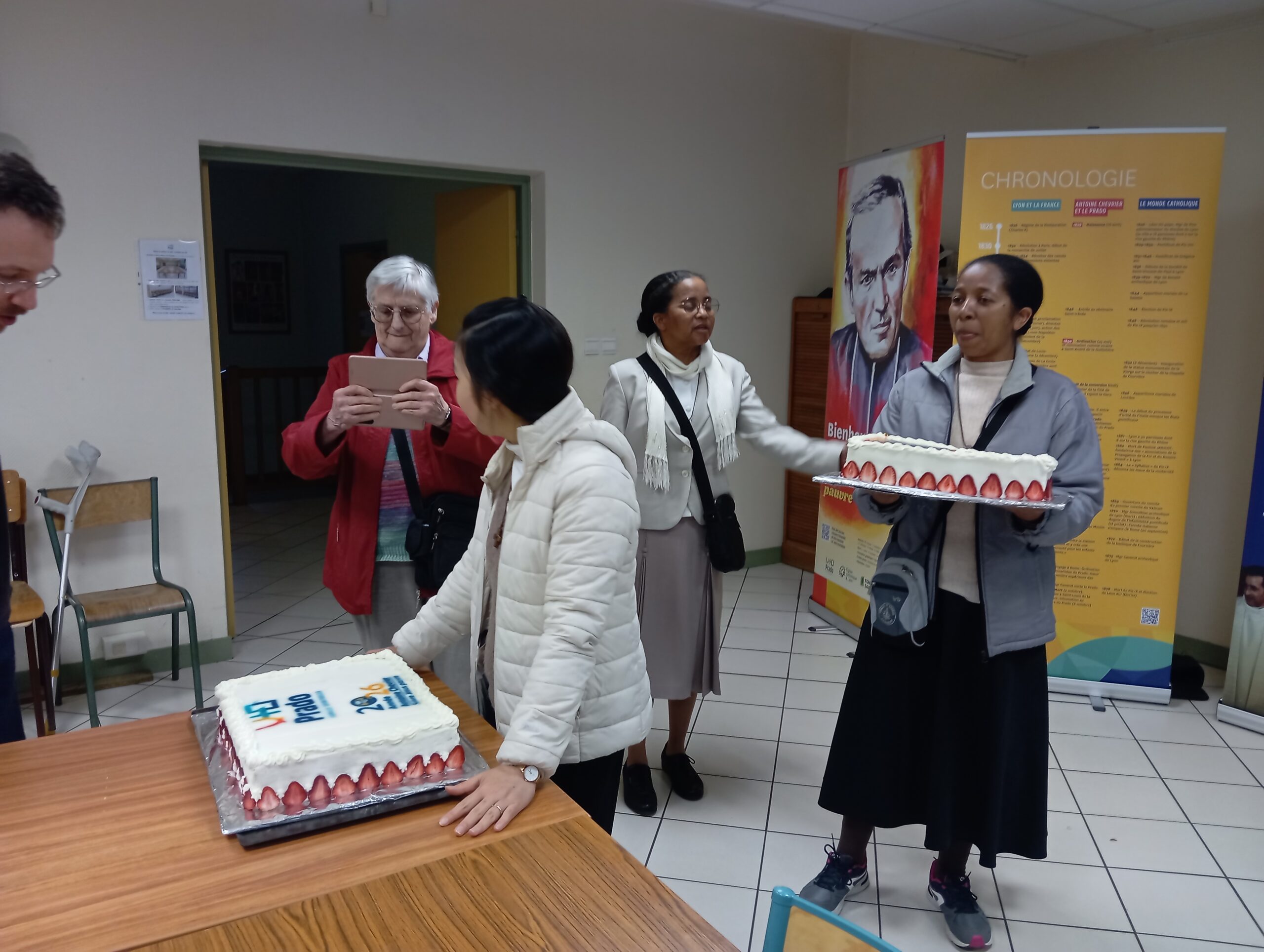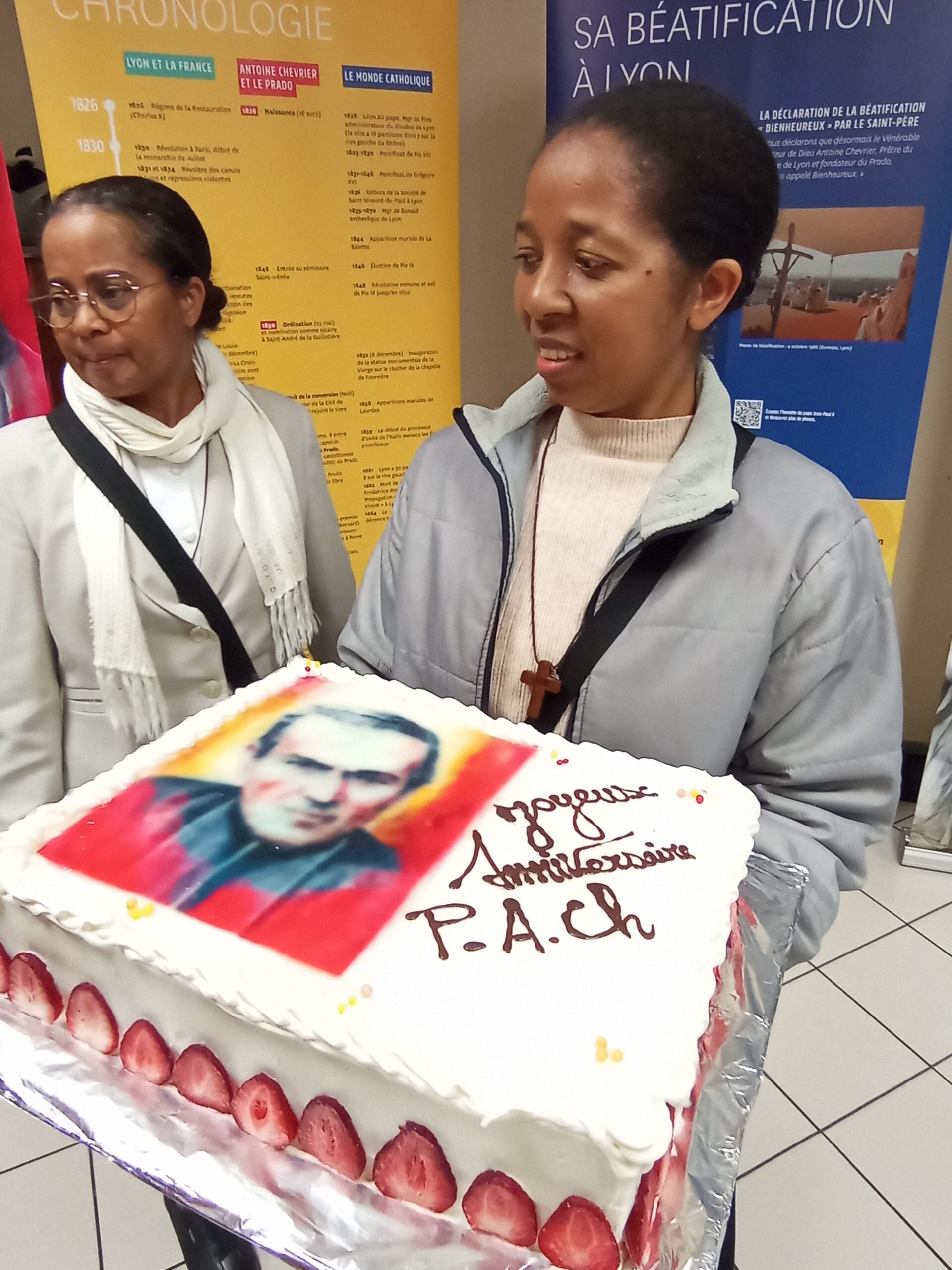 Magnifique conclusion de cette belle journée, autour des gâteaux d’anniversaire des 200 ans (bravo et merci à la pâtissière). Un moment de joie partagée, de convivialité et de fraternité, où la fête s’est prolongée dans l’action de grâce et la gratitude pour tout le chemin parcouru. Les paroles du Bienheureux Antoine Chevrier, inscrites sur des papiers colorés, ont circulé parmi l’assemblée, offrant à chacun l’occasion de partager sa spiritualité et de se laisser toucher par la profondeur de son message.