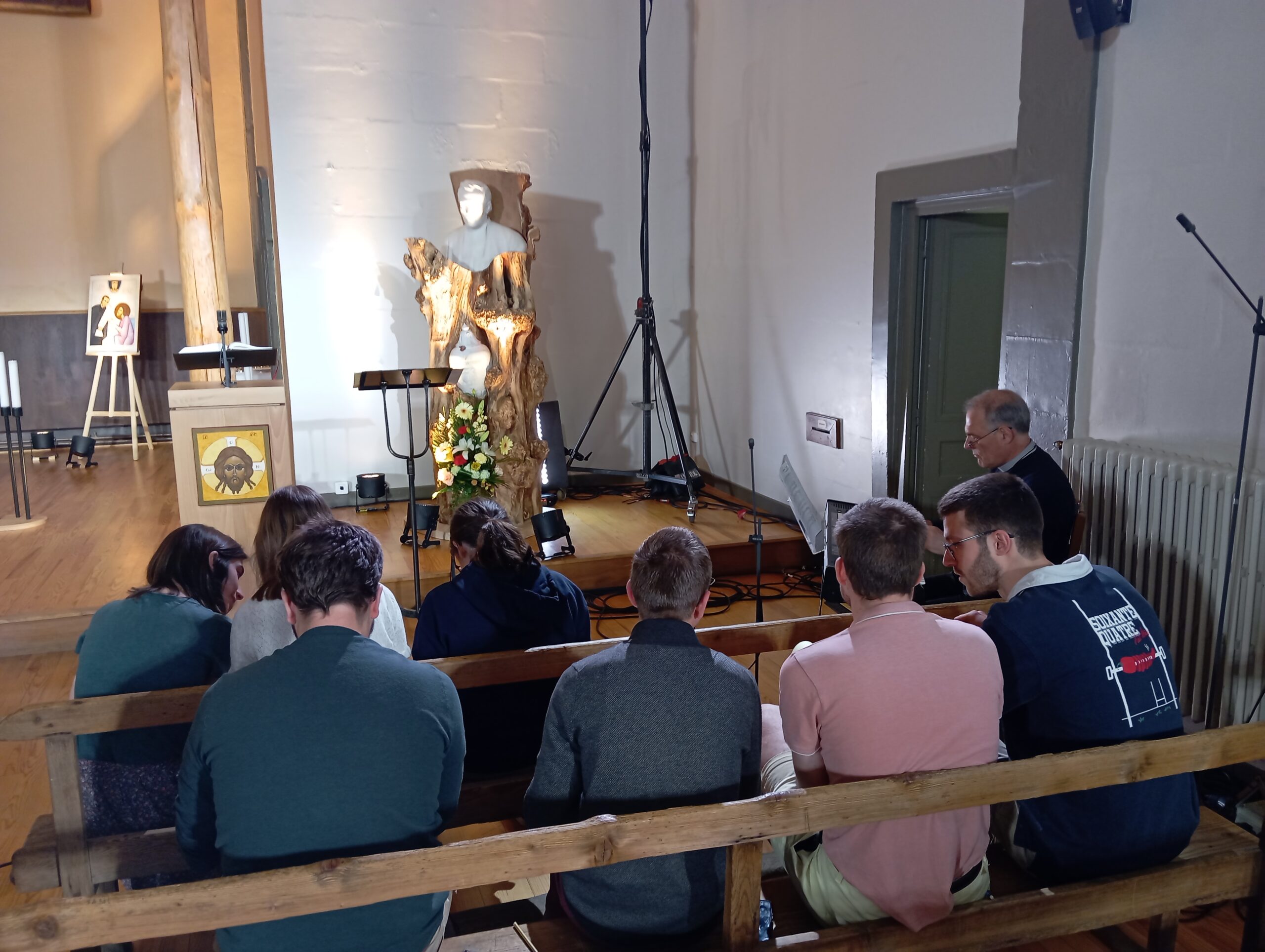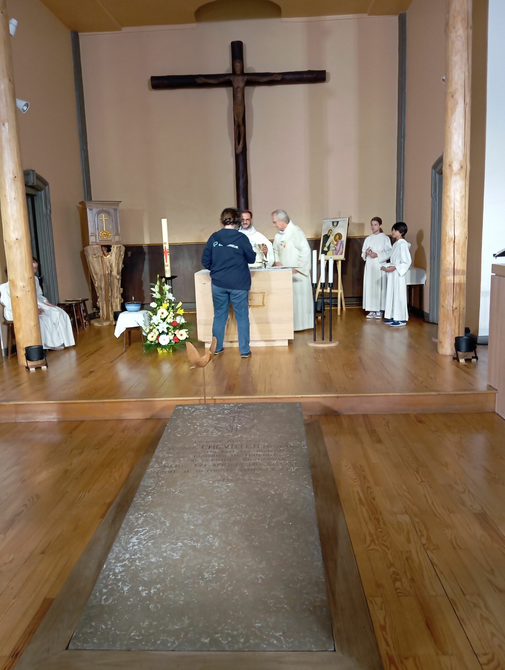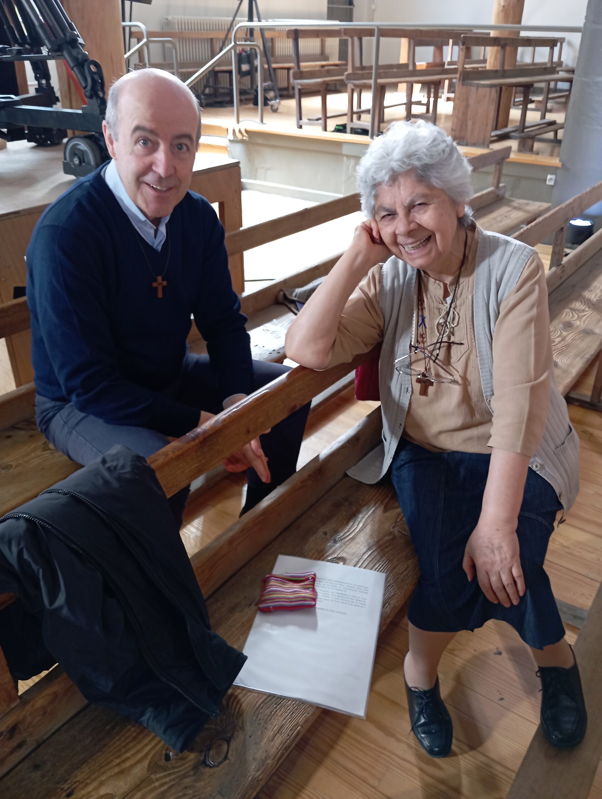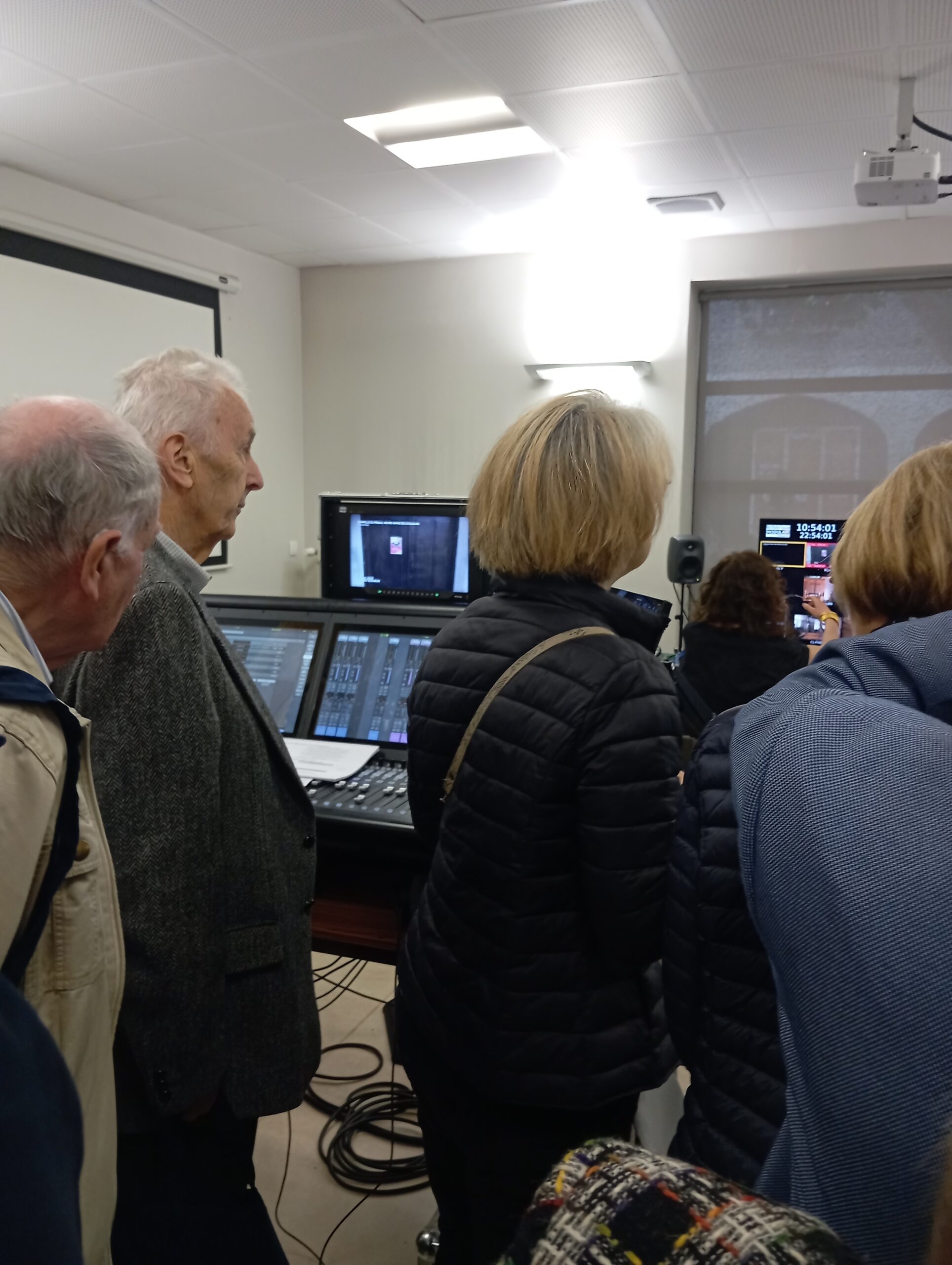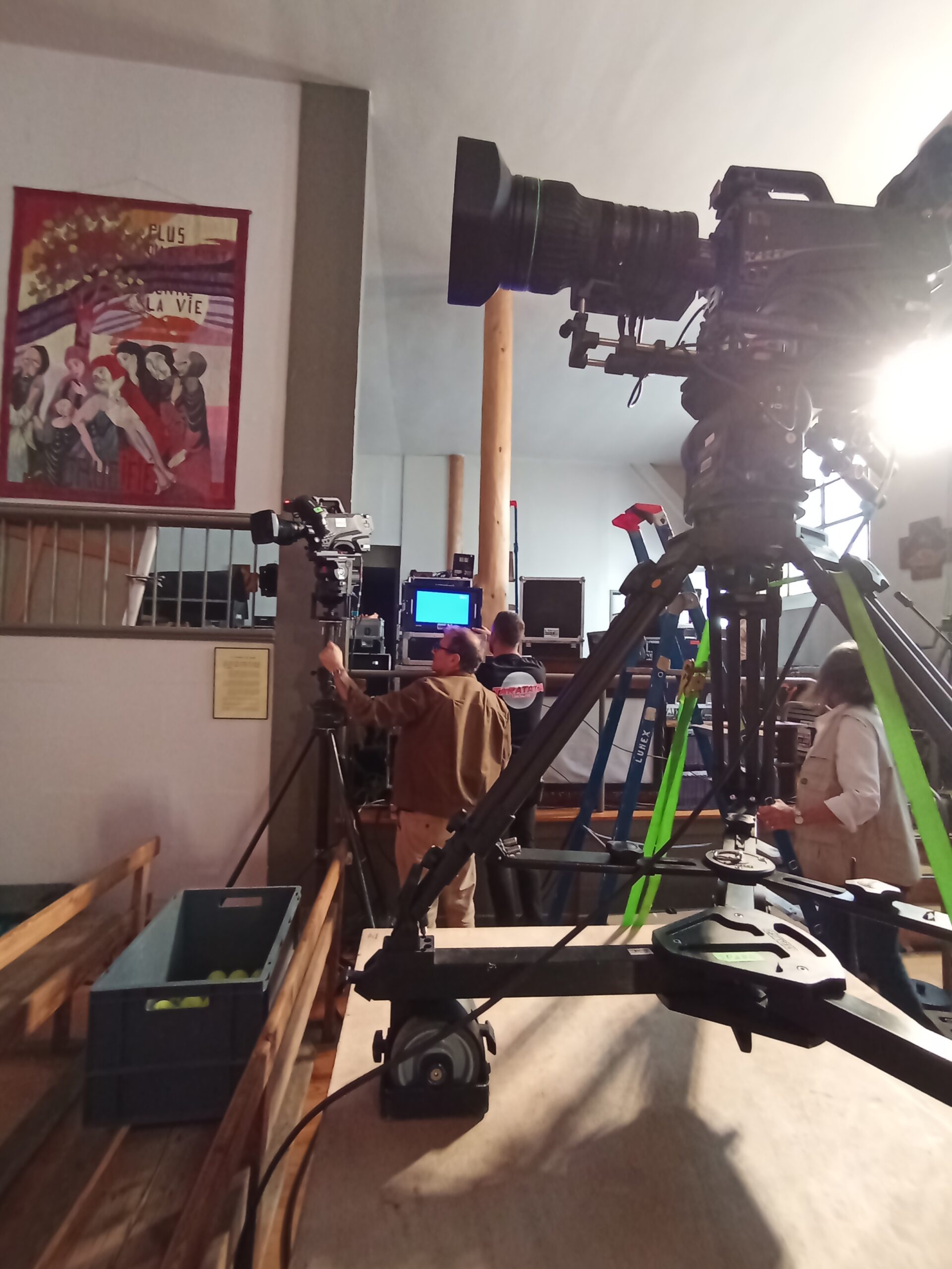 Samedi après-midi, rendez-vous OPV*, un temps de mise en place en présence de Mgr Loïc LAGADEC, du père Diego MARTÍN PEÑAS (Responsable des prêtres et laïcs consacrés du Prado), de sœur Nora (Responsable des sœurs du Prado), de Pim (Pilar QUERALT CAPDEVILA, Responsable de l’IFP), des célébrants (les pères Luc LALIRE, Dominique NALIS, Jean-Yves LEBORGNE…), des lecteurs, de la chorale et de la Famille du Prado. Un moment précieux où chacun ajuste sa place pour que la célébration soit vécue dans la justesse, la sérénité et l’unité.  et préparatifs avant la diffusion : rendez-vous avec l’OPV, briefing des équipes, puis tournage des images d’illustration avant le filage.