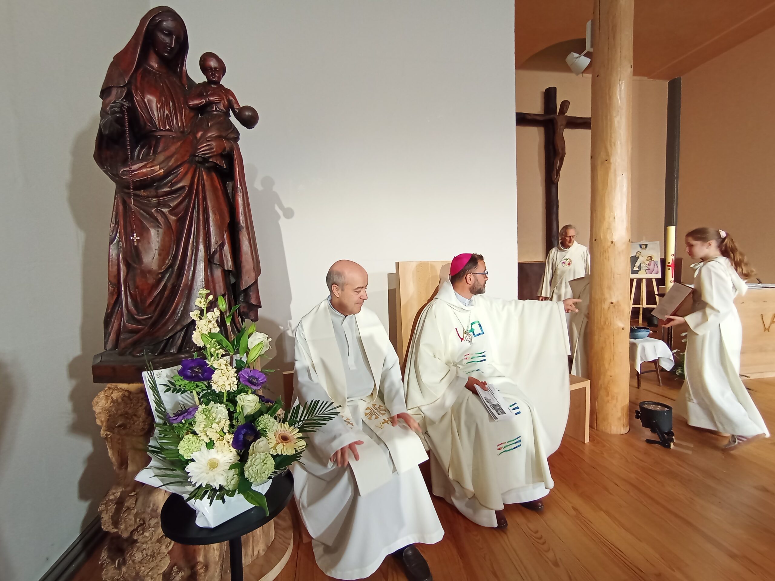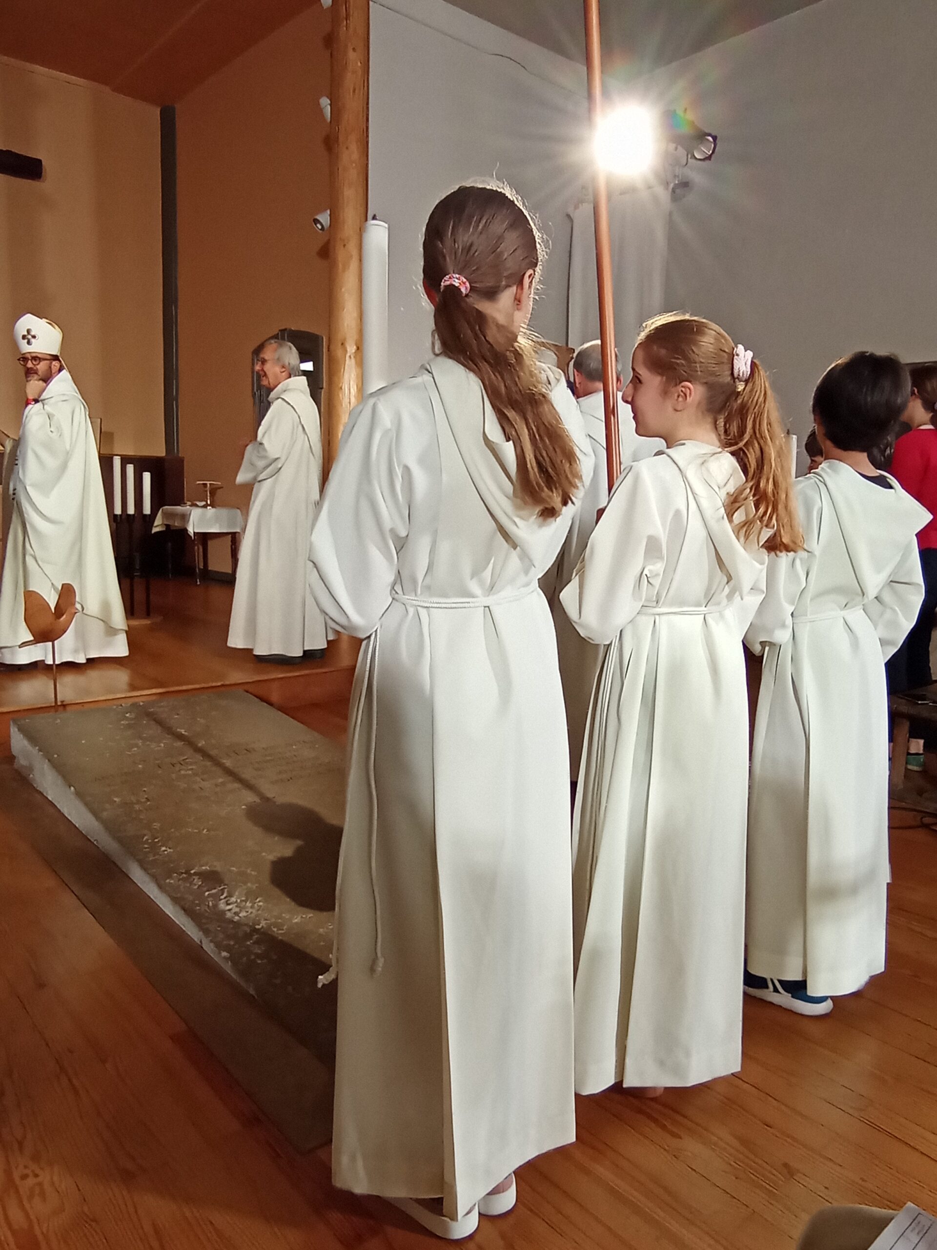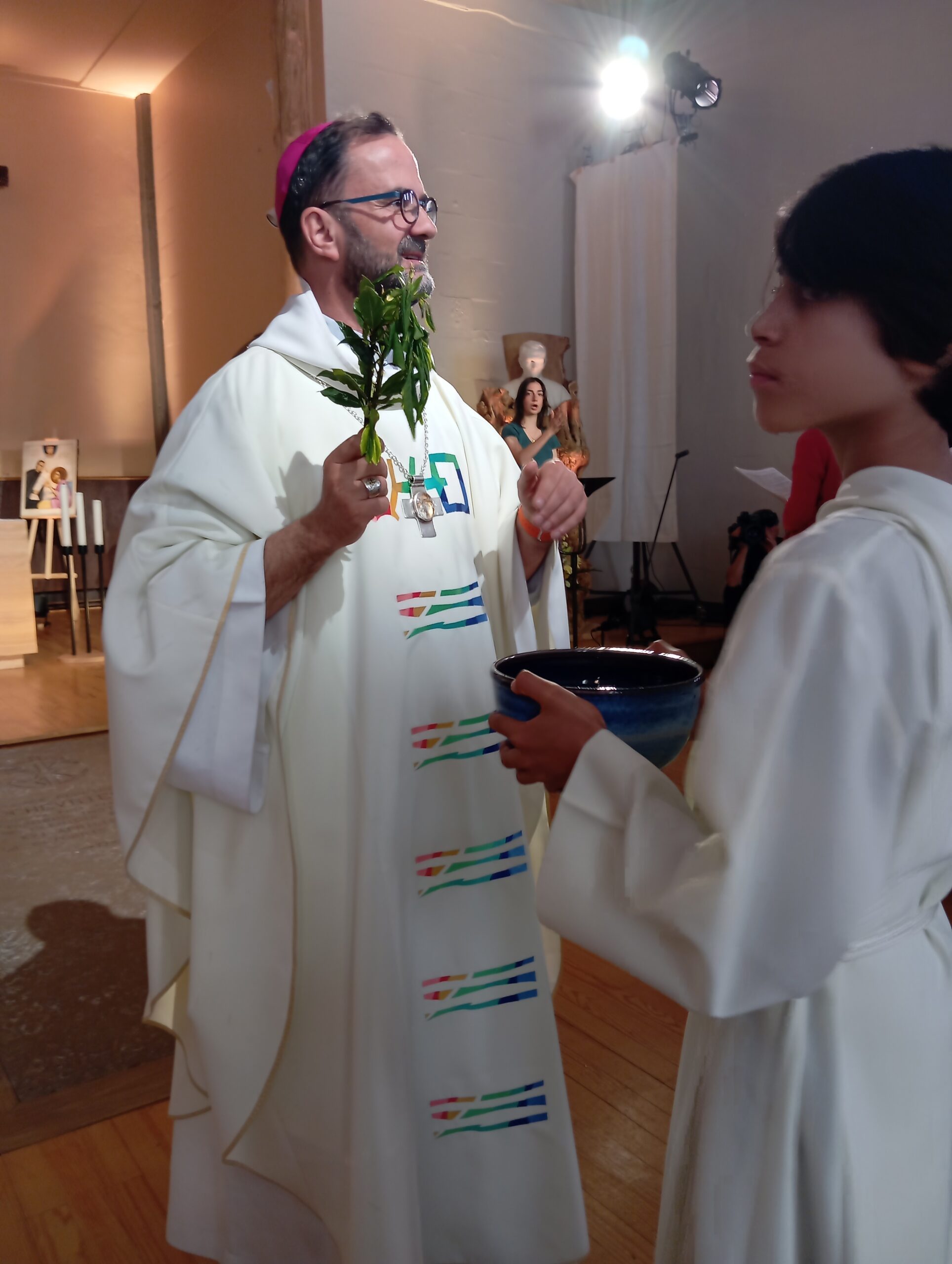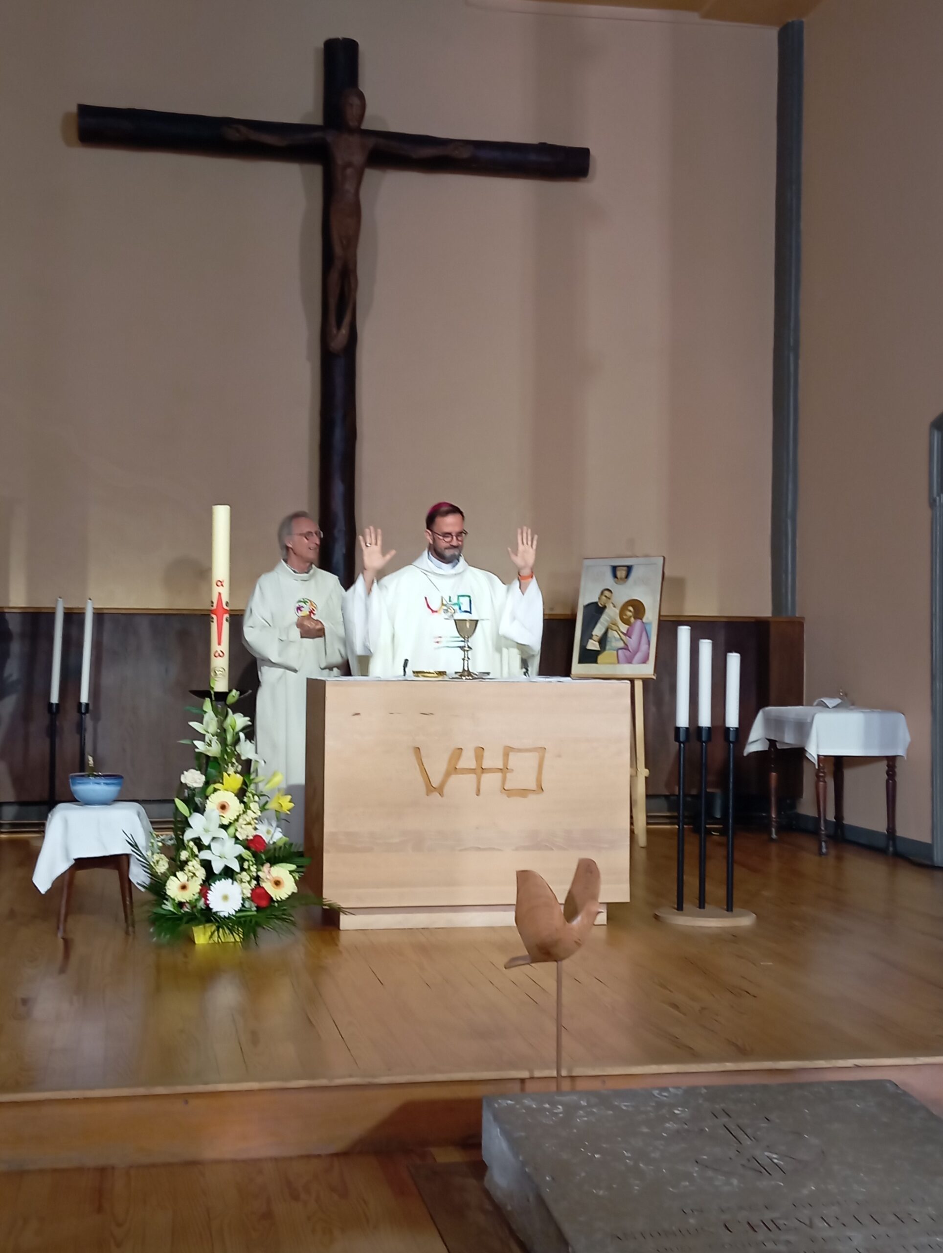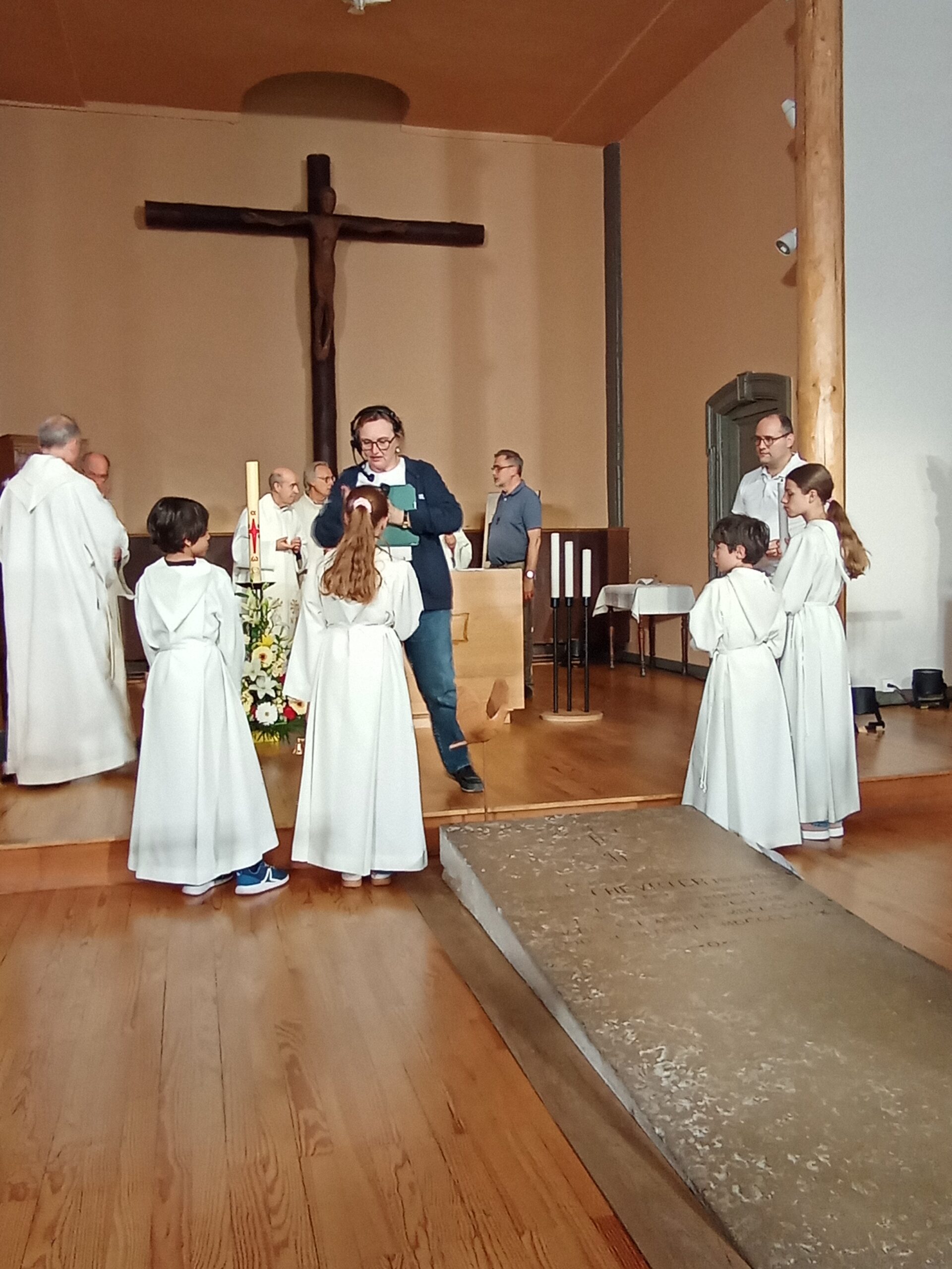 Samedi après-midi, rendez-vous OPV*, un temps de mise en place en présence de Mgr Loïc LAGADEC, du père Diego MARTÍN PEÑAS (Responsable des prêtres et laïcs consacrés du Prado), de sœur Nora (Responsable des sœurs du Prado), de Pim (Pilar QUERALT CAPDEVILA, Responsable de l’IFP), des célébrants (les pères Luc LALIRE, Dominique NALIS, Jean-Yves LEBORGNE…), des lecteurs, de la chorale et de la Famille du Prado. Un moment précieux où chacun ajuste sa place pour que la célébration soit vécue dans la justesse, la sérénité et l’unité.  et préparatifs avant la diffusion : rendez-vous avec l’OPV, briefing des équipes, puis tournage des images d’illustration avant le filage.