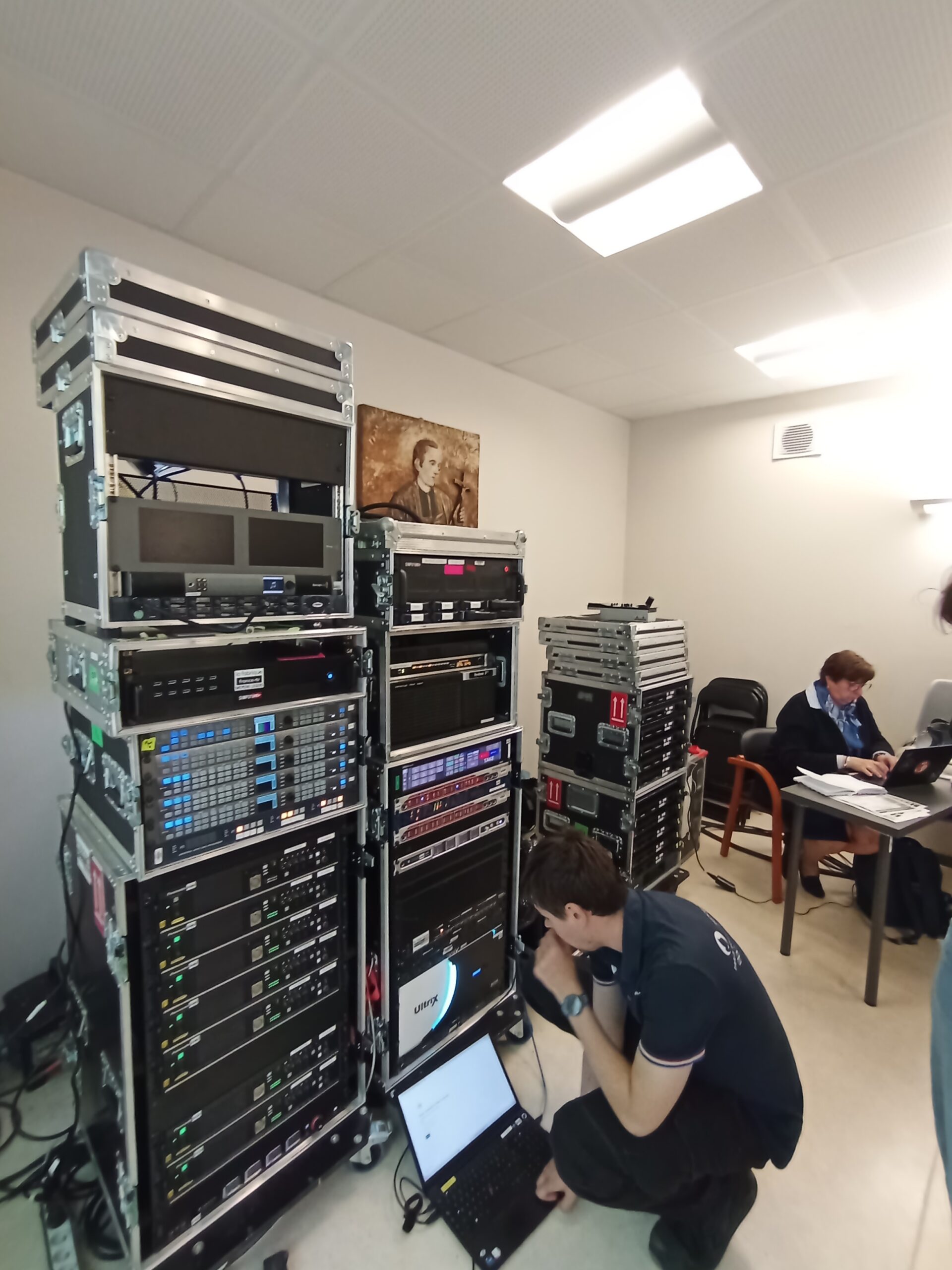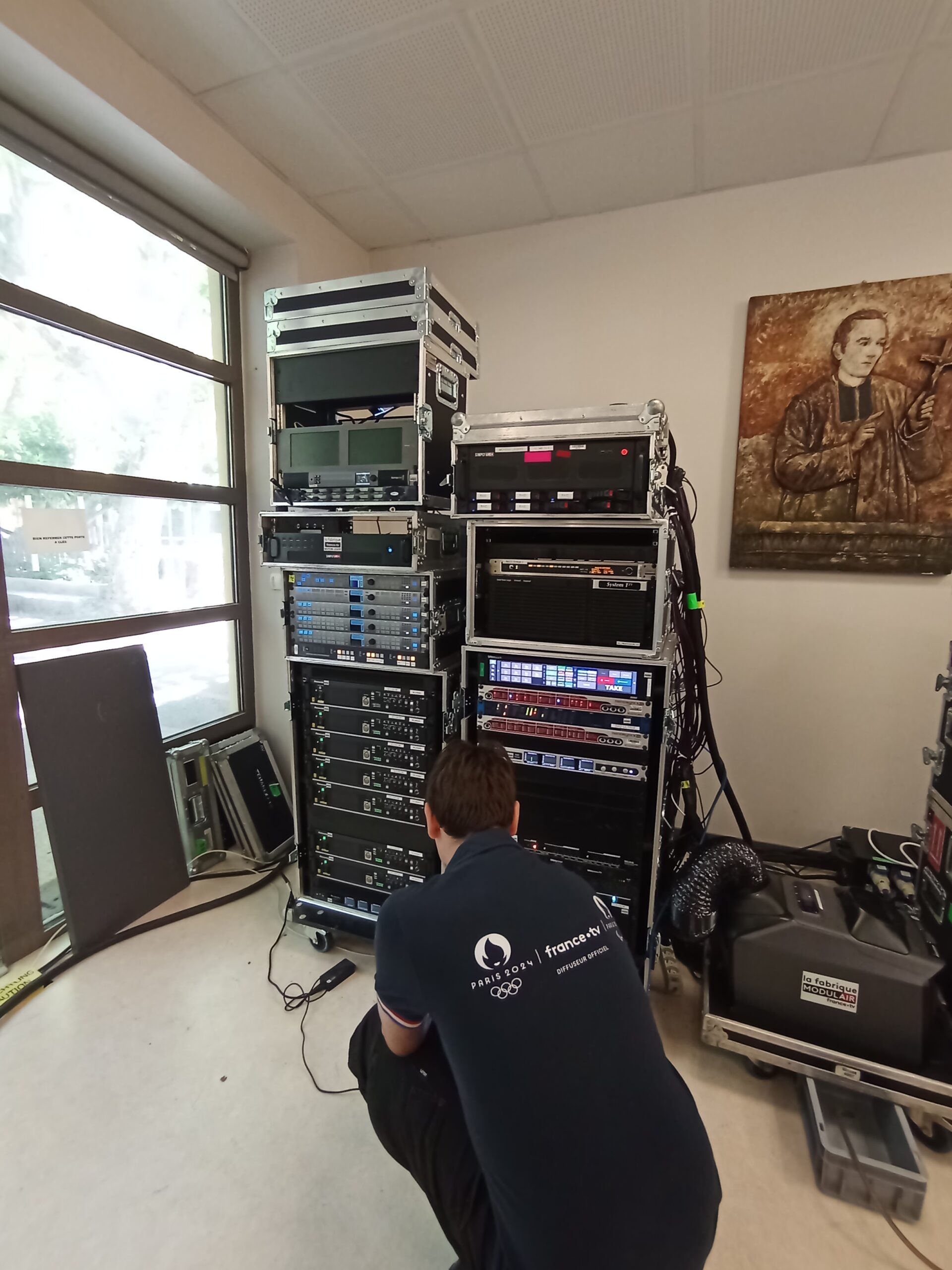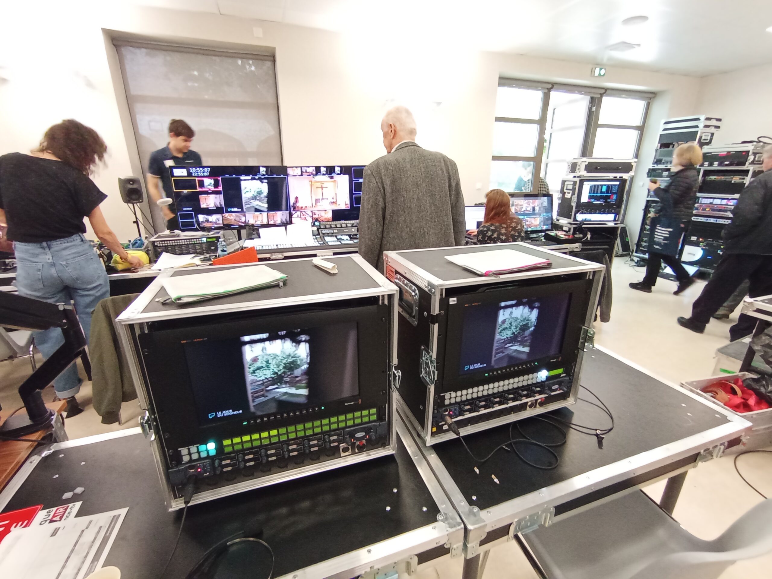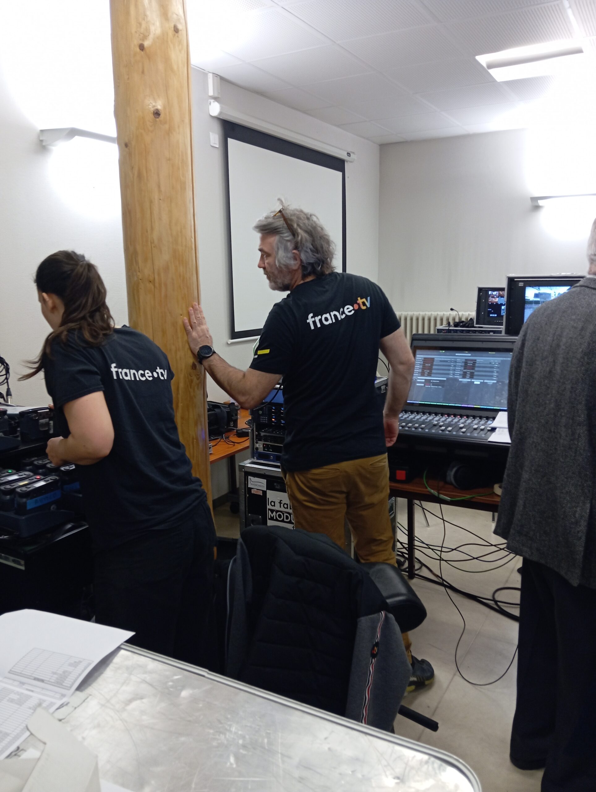 La visite a permis de prendre la mesure des moyens mobilisés pour une telle diffusion. Deux camions dédiés à l’énergie, un camion satellite pour la transmission en direct, ainsi qu’une régie mobile entièrement démontable (« flight ») sont installés sur place dès le vendredi matin.