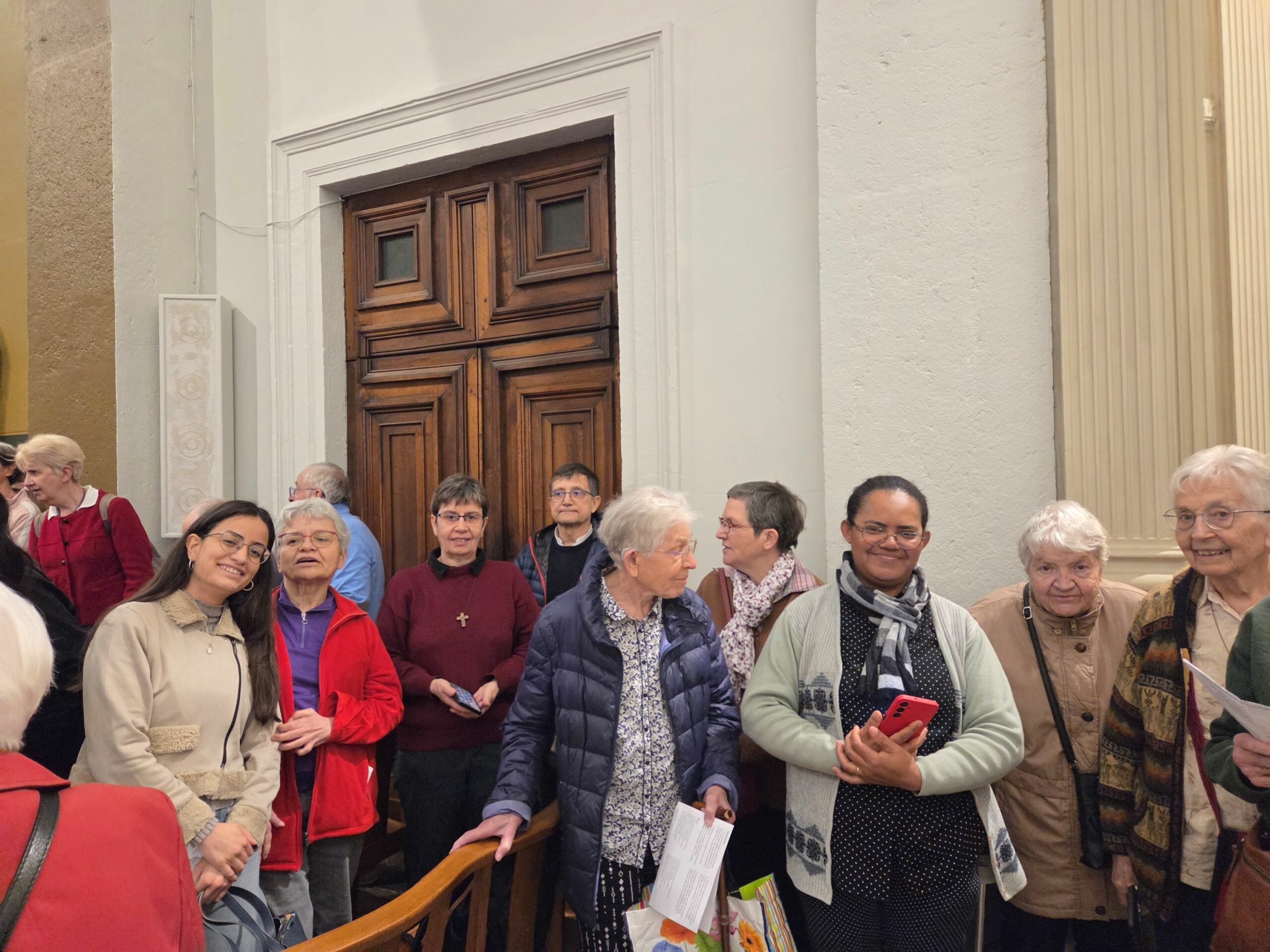 L’œuvre (en illustration de l’article) a été dévoilée aux fidèles réunis samedi 18 avril 2026 à 18h, en présence des membres de la Famille du Prado, dont les sœurs du Prado (Marie Jo Bellerre…), des pères Guy Rougerie, Régis Charre et Michel Durand, qui a accompagné la réalisation de cette création, ainsi que de jeunes bénévoles.