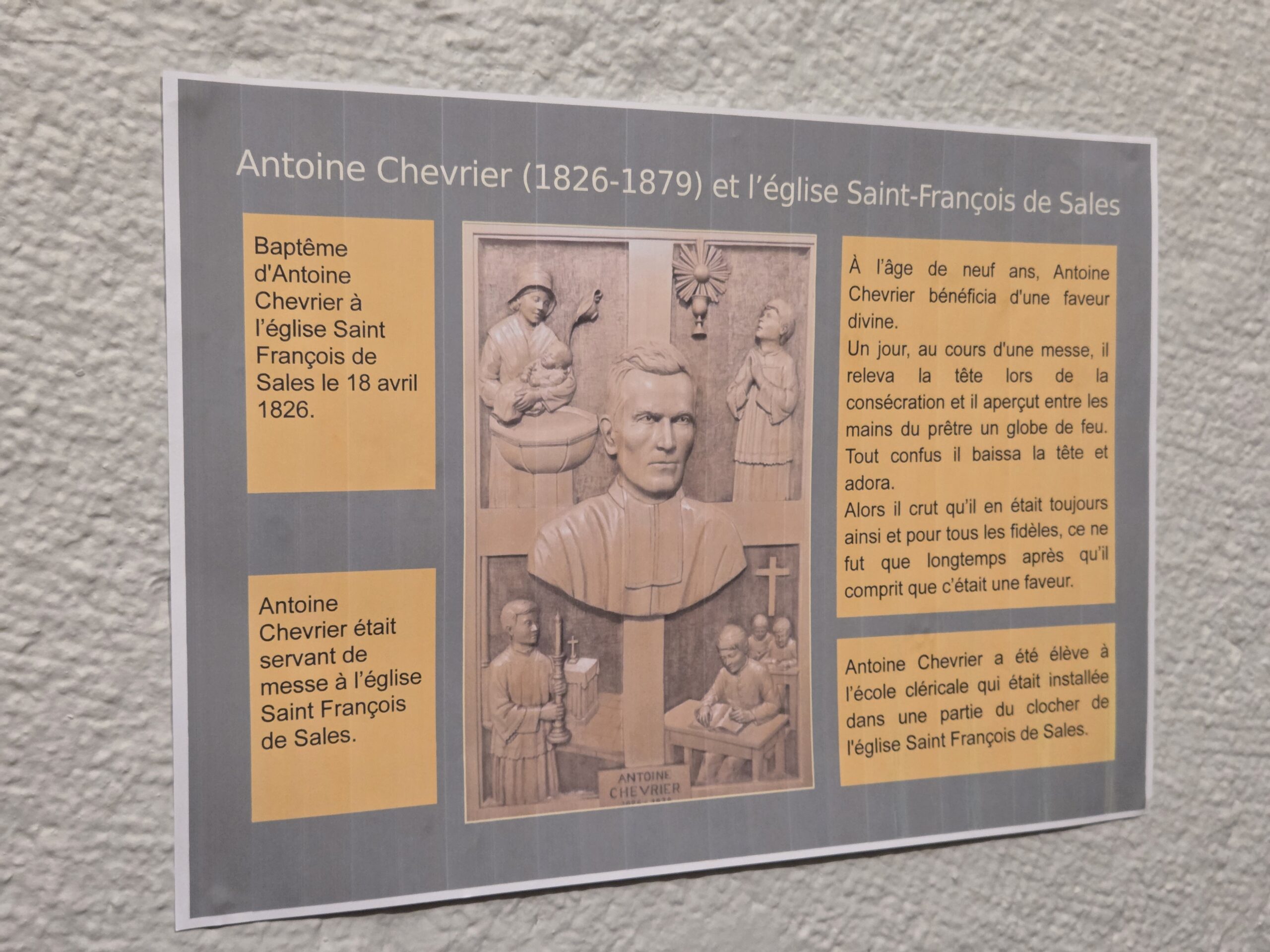 L’œuvre a été dévoilée dimanche 19 avril 2026 à 10h. Une conférence « Le père Chevrier et la mission » a également été proposée de 11h15 à 11h45 par Sœur Marie-Hélène Robert (Notre Dame des Apôtres, professeur de théologie à l’UCLy, titulaire de la Chaire Paul Couturier [unité des chrétiens]).