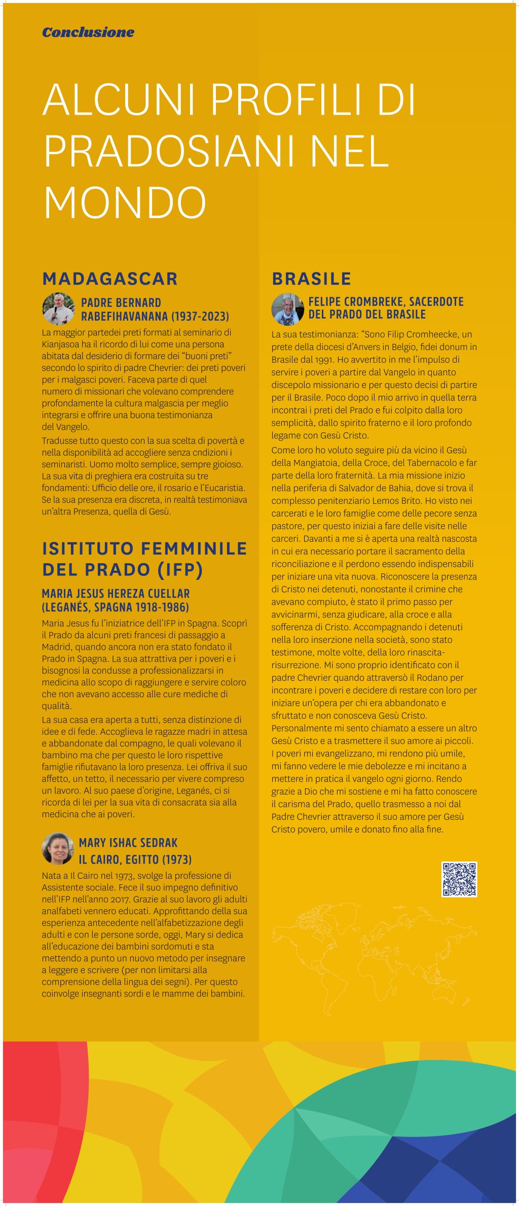 • « Alcune figure pradosiane nel mondo » con Francisco GIRON FERNÁNDEZ-HUELVA (Spagna), Elias ZAHLAWI (Siria), Makram KOZAH (Libano), Bernard RABEFIHAVANANA (Madagascar), Claude COLLAUDIN (Vietnam), le suore del Prado a Ho Chi Minh (Vietnam), Mons. Olivier de BERRANGER (Francia/Corea), Stéphan KIM Seong-hyun (Corea/Mongolia) o Felipe CROMBREKE (Brasile). Troverete anche rappresentanti dell’Istituto Femminile del Prado (IFP) come Maria Jesus HEREZA CUELLAR (Spagna) e Mary Ishac SEDRAK (Egitto).