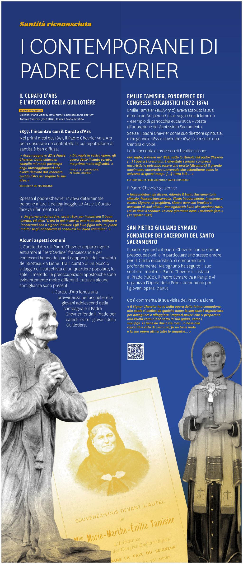 Pannelli complementari vi offriranno punti di riferimento spirituali e storici per addentrarvi più profondamente nell’eredità di Padre Antoine Chevrier in Francia e oltre i nostri confini: