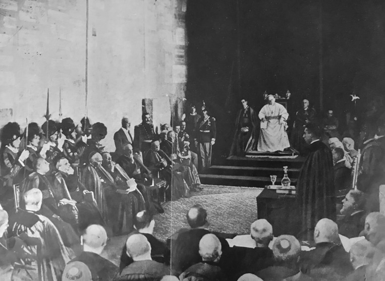 Le chroniqueur du Séminaire rendit compte de l’événement, éperdu d’admiration : « Imperturbable à l’attaque et prompt à la riposte, le soutenant n’est pris à l’improviste sur aucun point. Il distingue ici, définit là, riposte encore, répond toujours, etc. » Tant et si bien qu’à la fin, « satisfait d’être vaincu », le cardinal Sincero se lève et se tournant vers le Pape, s’écrie « Beatissime Pater, peto pacem, très Saint-Père, je demande la paix ». Pie XI se lève à son tour, félicite les professeurs de la Grégorienne, en ce jour où l’on célèbre justement le centenaire de la restitution du Collège romain à la Compagnie de Jésus, appelle par deux fois le jeune prêtre « le héros de la journée »… Il n’y a plus qu’à baisser le rideau. Quant au contenu des syllogismes, rien que de très orthodoxe on s’en doute ; le brillant lauréat obtint son doctorat « summa cum laude ». Et un tableau immortalisa l’événement.